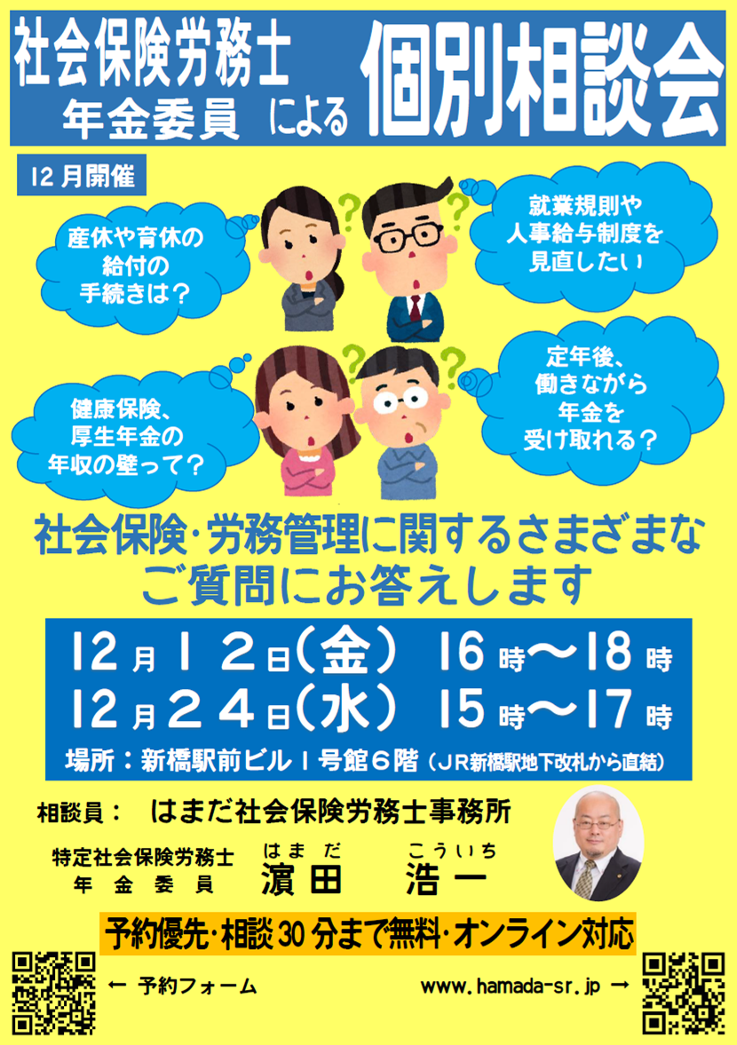 12月度 社会保険労務士・年金委員による個別相談会(2025/12/1)