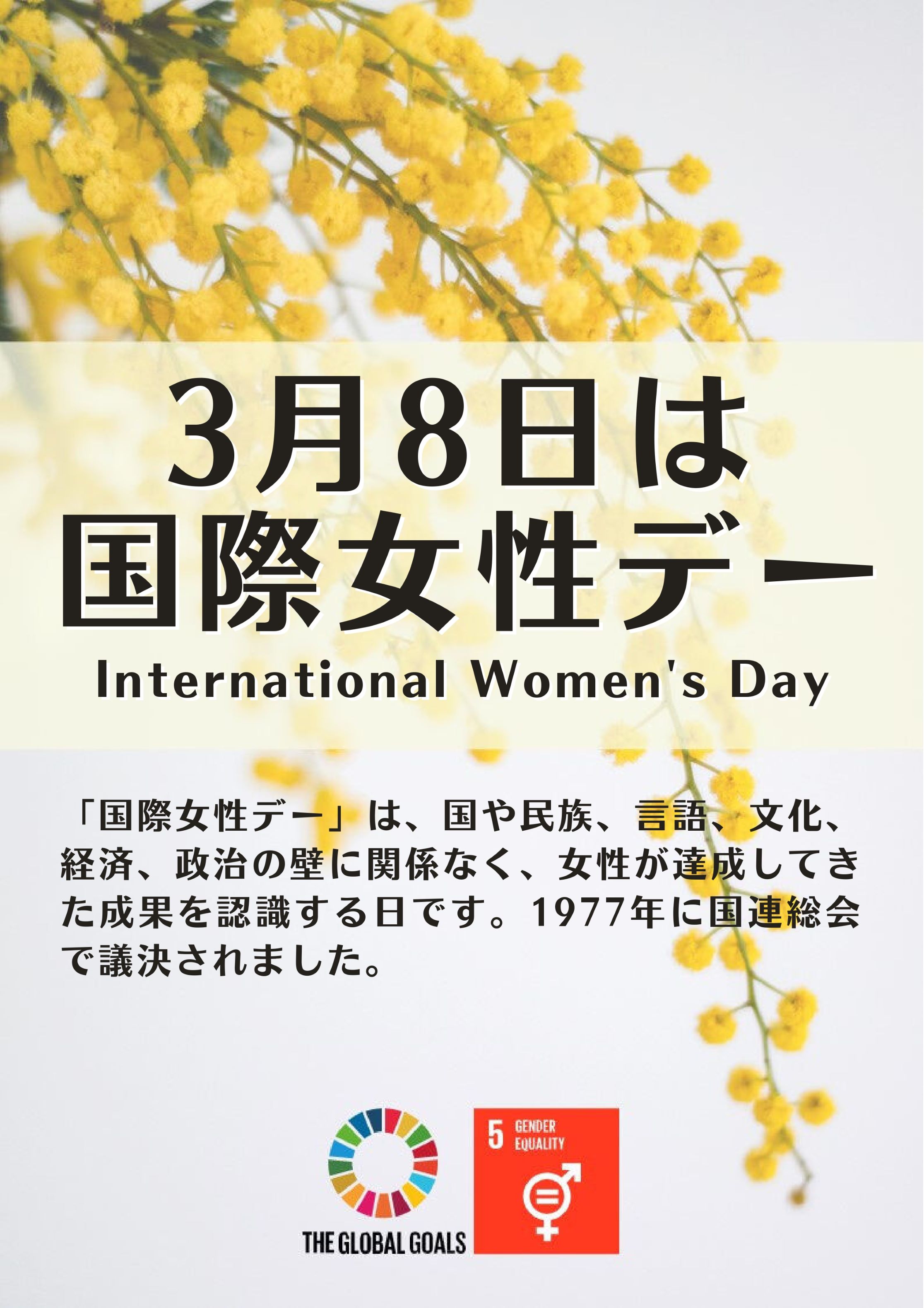 「国際女性の日」は、国際婦人年である1975年3月8日に国連で提唱され、今年で50年を迎えました。