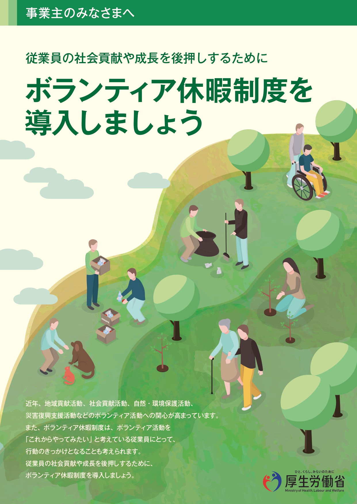 (参考)厚生労働省リーフレット 事業主のみなさまへ ボランティア休暇制度を導入しましょう