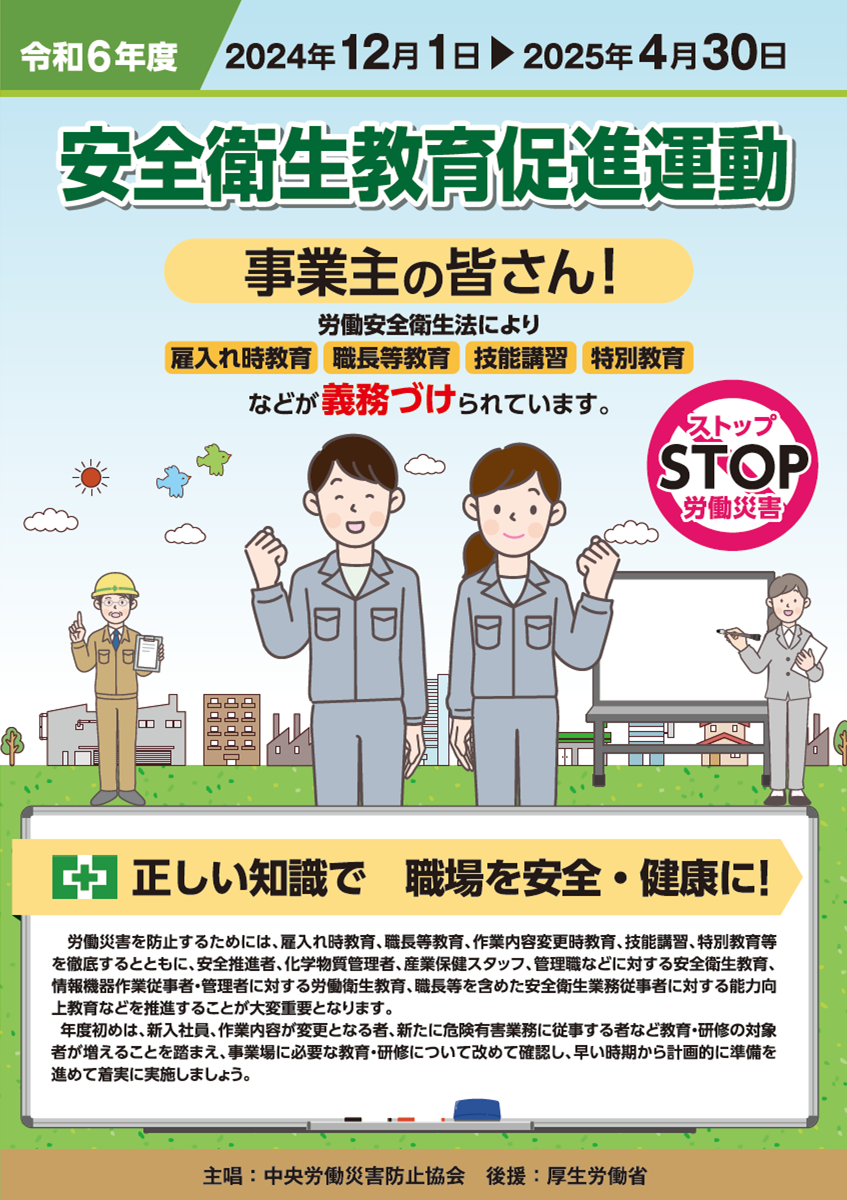 【安全衛生教育促進運動】が12月から来年4月にかけて実施されます。