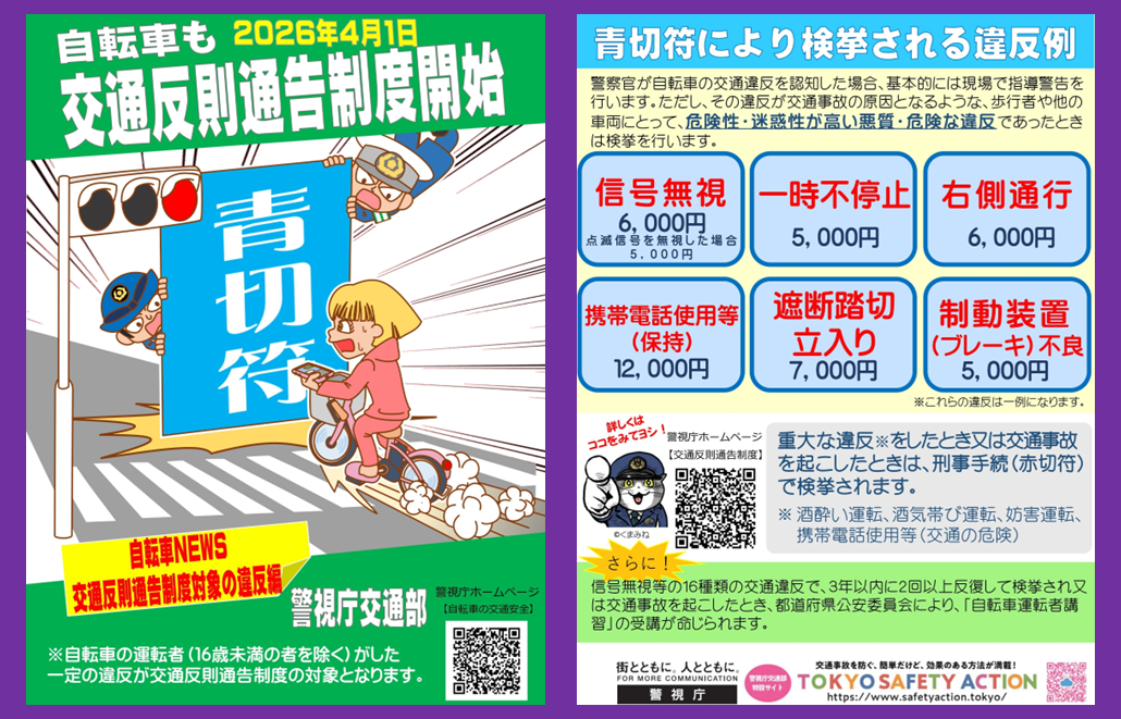 2026年(令和8年)4月から、自転車の交通違反にも「青切符」が始まります。