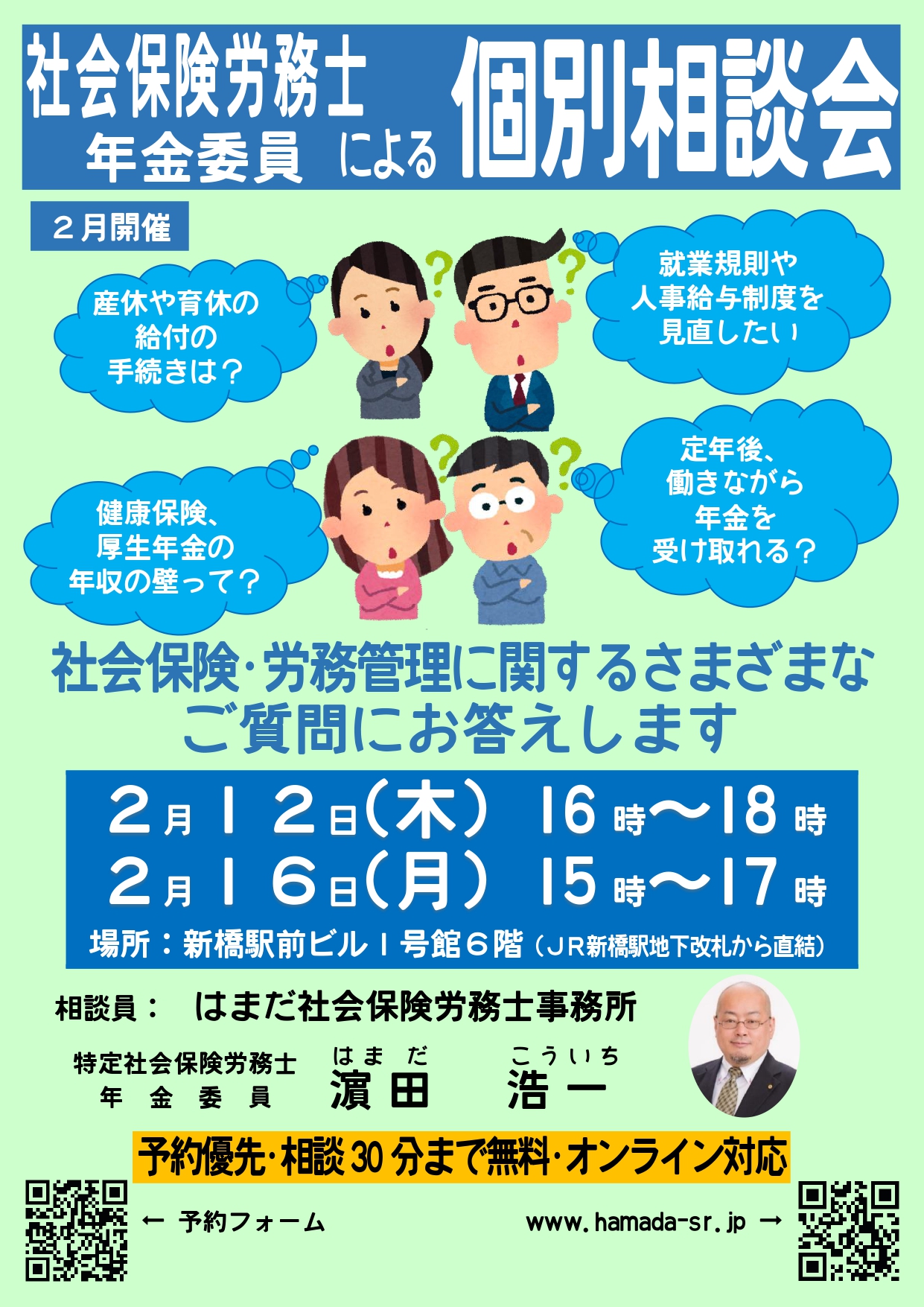2026年(令和8年)2月度 社会保険労務士・年金委員による個別相談会(2026/2/1)