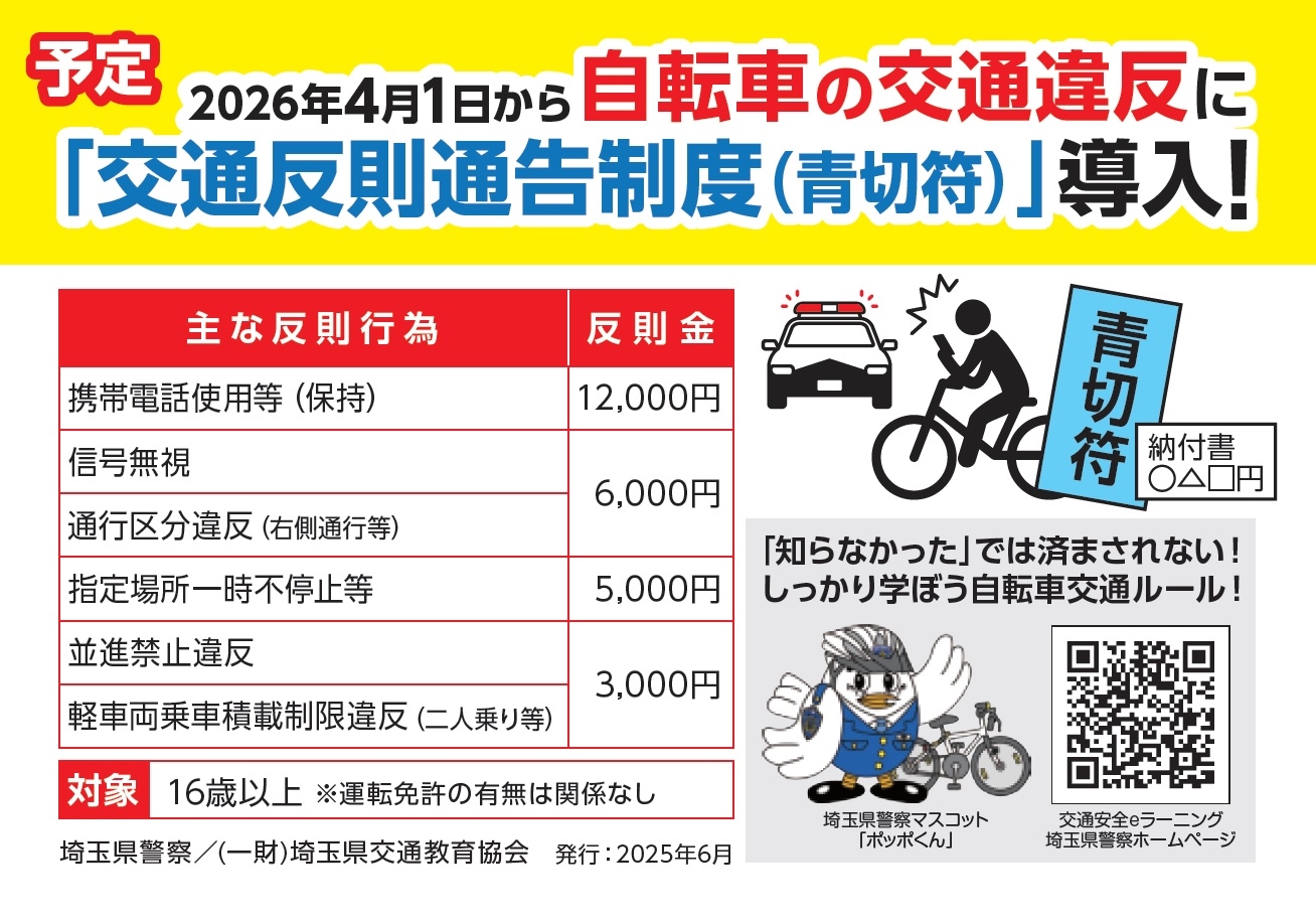 また、来年(令和8年/2026年)4月から、自転車の交通違反にも「青切符」が始まります。