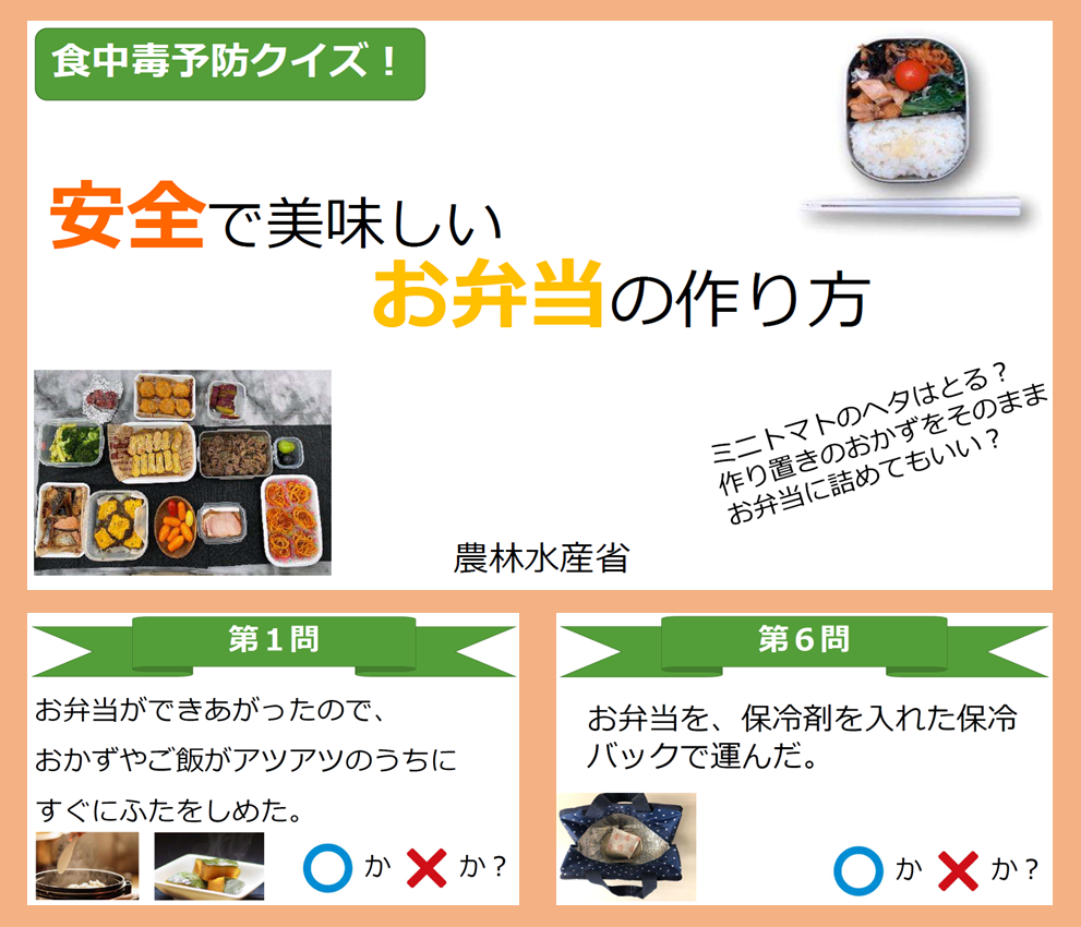 同 食中毒予防クイズ!安全で美味しいお弁当の作り方