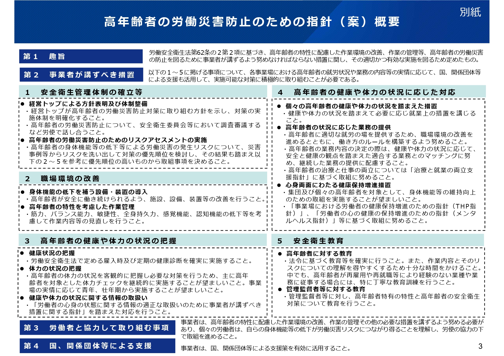 厚生労働省 「高年齢労働者の労働災害防止対策に関する検討会」の報告書を公表します